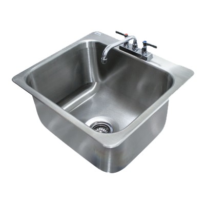 Drop-In Sink, one compartment, 20" wide x 16" front-to-back x 12" deep bowl, 18 gauge stainless steel, with deck mounted 8" swing spout faucet, basket drain