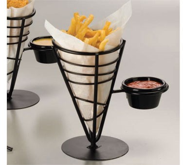 Ironworks French Fry Basket, conical, with (1) ramekin, 9" H, black wrought iron