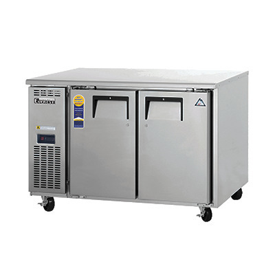 Undercounter/Worktop Refrigerator, two-section, 13 cu. ft. capacity, (4) shelves, side mounted refrigeration system, digital control system, adjustable self-closing doors, door locks (from 2015 model), stainless steel interior & exterior, LED interior lighting, 1/4+ HP, 115v/60/1-ph, 3.50 amps, NEMA 5-15P, NSF, ETL-Sanitation