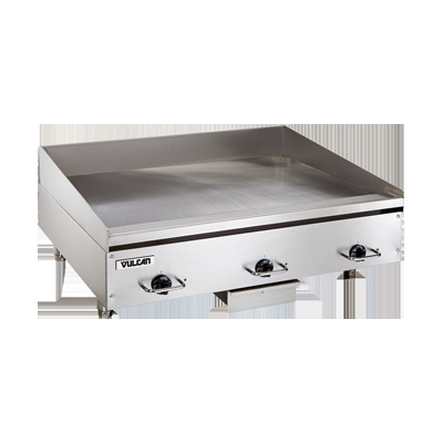 Heavy Duty Griddle, electric, countertop, 48" W x 24" D cooking surface, 1/2" thick polished steel griddle plate, bottom mounted snap action thermostat every 12", low profile, stainless steel front, sides, front top ledge with "Cool Bullnose", front grease trough, 4" back & tapered side splashes, 4" adjustable legs, cCSAus, NSF