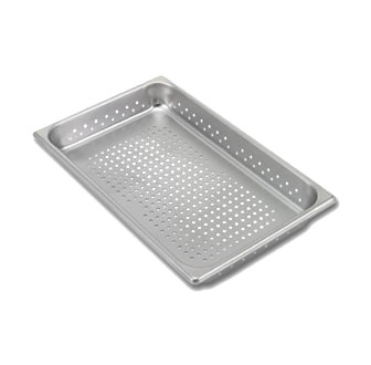 Food Pan, Stainless, full size perforated, 2-1/2" deep, 300 series stainless steel, 22 gauge, USA made, NSF