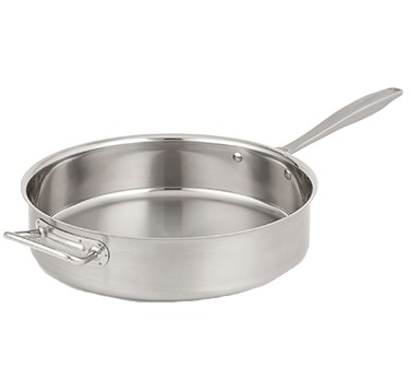 Intrigue® Saute' Pan, 9-1/2 qt.(9.0L), 18-8 s/s body, w/1/4" Alum-S/S Clad Bottom, for gas, electric, induction & ceramic cooktops, combination satin/mirror finish, welded hollow handle, inside diameter 14.2", inside depth 3.5", Body Thick .059", Lifetime Warranty, Imported, NSF, Jacobs Pride Collection