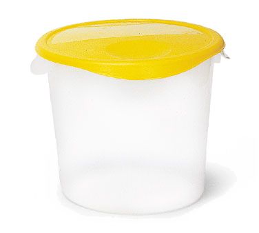 Storage Container, round, 22 qt., 13-1/8" x 14", stackable, deep, easy-grip handles, -20°F/-34°C to 212°F/100°C temp. range, dishwasher safe, polypropylene, clear, NSF