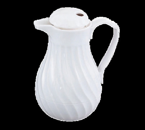 Tilt & Pour® SwirlServe® Beverage Server, 42 oz., ABS plastic exterior, polypropylene liner, insulated with polyurethane, white, hand wash only, imported