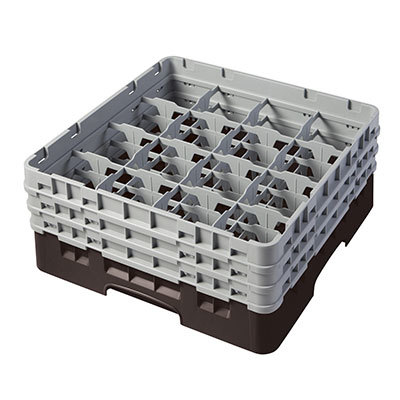 Camrack® Glass Rack, with (3) soft gray extenders, full size, 19-3/4" x 19-3/4" x 8-7/8", (16) compartments, 4-3/8" max. dia., 6-7/8" max. height, brown, HACCP compliant, NSF