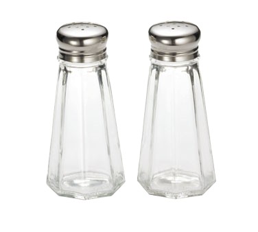 Salt/Pepper Shaker, 2-1/8" diameter, 3 oz., glass with 18-8 stainless steel top