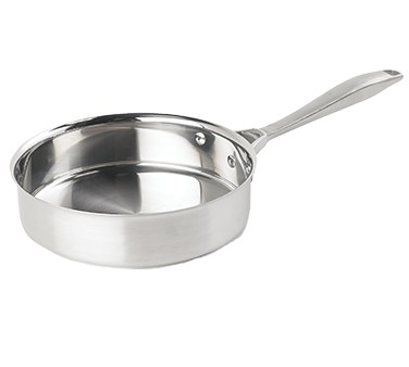 Intrigue® Saute' Pan, 3 qt.(2.8L), 18-8 s/s body, w/1/4" Alum -S/S Clad Bottom, for gas, electric, induction & ceramic cooktops, combination satin/mirror finish, welded hollow handle, inside diameter 9.4", inside depth 2.5", Body Thick .047", Lifetime Warranty, Imported, NSF, Jacobs Pride Collection