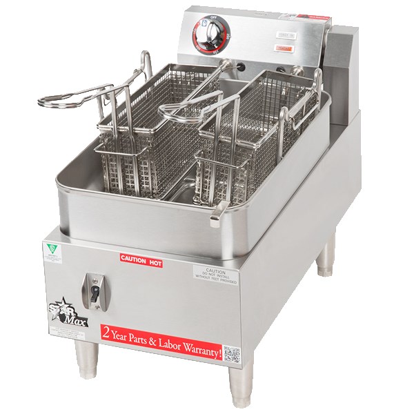Star-Max® Fryer, countertop, electric, 1 fry pot, twin baskets, 15 lb. fat capacity, adjustable snap action thermostat, steel pot, vinyl clad trim on s/s front, signal lights, immersion type tubular element, lead-in cord & plug, 4" legs, high wattage