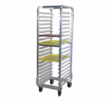 Pan Rack, mobile, standard duty, holds (18) 18"x26" bun or sheet pans, slides on 3" centers, all welded heavy duty aluminum construction, end loading, 5" swivel stem casters, 65"H, NSF