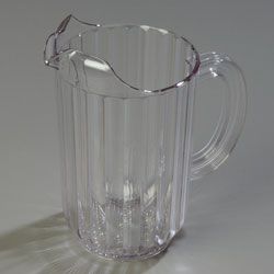 Pitcher, 48 oz., fluted straight sides, contoured lip design, break-resistant, dishwasher safe, polycarbonate, clear, NSF, Made in USA