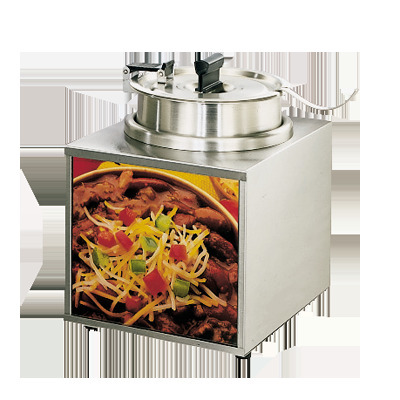 Lighted Food Warmer, countertop, electric, 3-1/2 quart capacity, hinged lid with 1 oz. ladle, serve from #10 can or optional stainless bowl, includes merchandising signs for Chili, Chili Sauce, Cheese Sauce, Nacho, Fudge, BBQ and Soup, stainless steel, cULus, UL EPH Classified, Made in USA