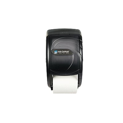 Oceans® Kolor-Cut Duett Bath Tissue Dispenser, fits (2) 4-1/2" to 5-1/2" rolls, break-resistant plastic, see-thru gauge, full swing replaceable cover & lock, 8"L x 7-3/4"W x 13"H, translucent black pearl