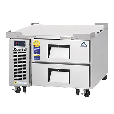 Chef Base Refrigerator, one-section, 36-3/8"W, (2) full pan size, (6) 1/6 pan size capacity, (2) drawers, (2) stainless steel pan dividers, side mounted refrigeration system, digital control system, dual air chaimber & vents, high heat insulation tech-mat, stainless steel grips for unit mobility, worktop security corner guards, stainless steel interior & exterior, heavy duty stainless steel drawer frames, low friction drawer bearing roller slides, (4) 4" diameter (5" overall height) swivel casters (front with brakes), (2) additional front legs, removable detergent-safe air filter, 115v/60/1-ph, NEMA 5-15P, 1/5 HP, 4.2 amps, ETL Safety, ETL-Sanitation