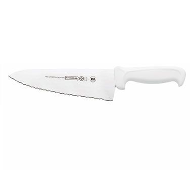 Sandwich Knife, 8", wide, serrated edge, high carbon/no stain blade, molded white polypropylene handle, treated with sanitized antimicrobial protection, NSF