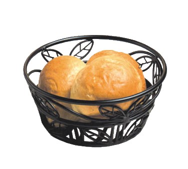 Bread Basket, 8" dia., black leaf design, wrought iron