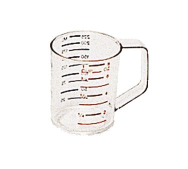 Bouncer® Measuring Cup, 1 cup, -40°F/-40°C to 212° F/100°C temp. range, measurement markings in red & blue, break-resistant polycarbonate, clear, NSF
