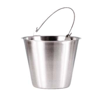 Deluxe Pail, 6 qt., 9-5/8" x 8"H, seamless, tapered, integral handle holes welded flush to edge, swing handle, heavy gauge, stainless steel
