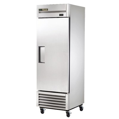Refrigerator, Reach-in, one-section, stainless steel door, stainless steel front, aluminum sides, clear coated aluminum interior with stainless steel floor, (3) adjustable PVC-coated wire shelves, interior lighting, 4" castors, R290 Hydrocarbon refrigerant, 1/5 HP, 115v/60/1, 2.8 amps, NEMA 5-15P, cULus, UL EPH Classified, CE, MADE IN USA