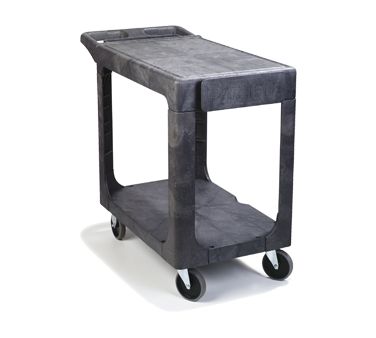 Utility Cart, 500 lb. capacity, 40"L x 19"W x 32-5/8"H, (2) flat shelves, molded-in handle, integrated cord wrap, (4)heavy-duty 5" non marking casters (2 swivel/2 rigid), polypropylene, gray, KD