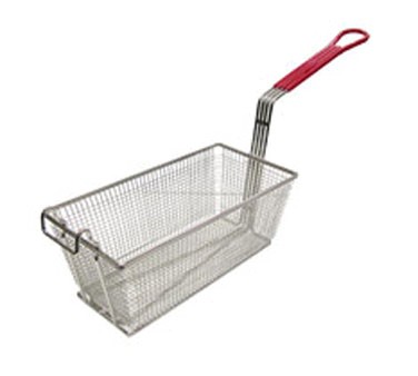 Fry Basket, 12-7/8" x 6-1/2" x 5-3/8" high, nickel plated one wire, red coated handle