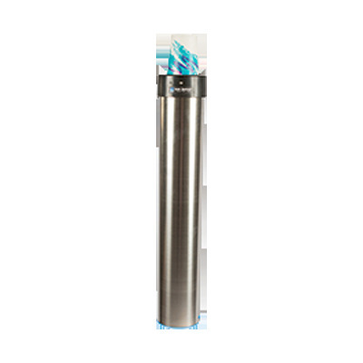 Cup Dispenser, surface mount, top loading, 23-1/2"L tube, for 12 to 24 oz. paper and plastic cups with rim diameter 2-3/4" to 3-7/8", horizontal mounting position only, adjustable collar conforms to cup size, 26-gauge stainless steel