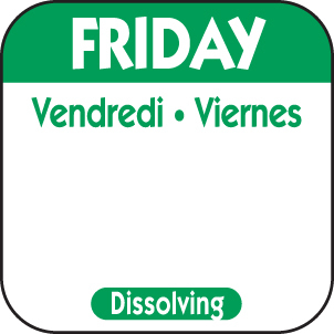 Dissolving Label: 1 x 1 Trilingual Dissolvable - Friday. 1000 Labels per roll