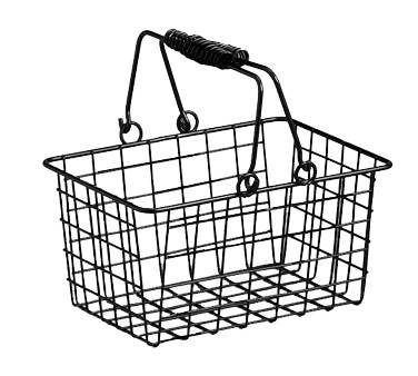 Basket w/Double Handle, rectangular, 9" x 7" x 5", black wire