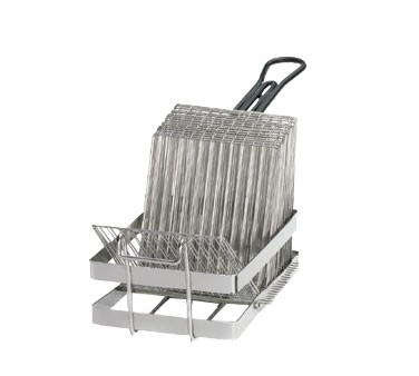 Tostada Fry Basket, holds (17) 6" tostada shells, black cool-to-touch vinyl handle, chrome plated