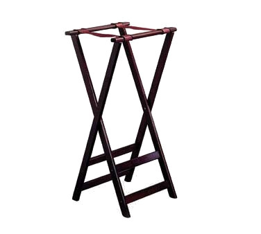 Tray Stand, 19" x 18-1/4" top, 38" H, rubber slip-proof stop rings, washable, replaceable webbing, mahogany finish