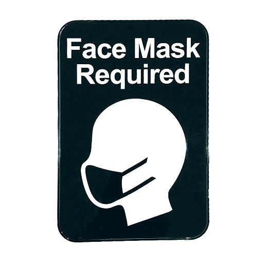 Sign, 9" x 6", "Face Mask Required", self adhesive backing, plastic, black