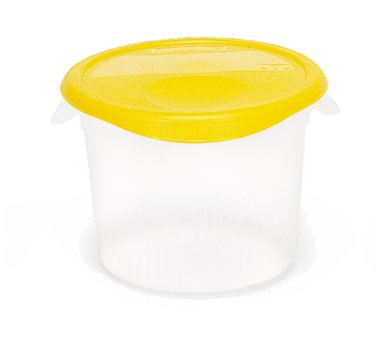 Storage Container, round, 6 qt., 10" x 7-5/8", stackable, deep, easy-grip handles, -20°F/-34°C to 212°F/100°C temp. range, dishwasher safe, polypropylene, clear, NSF