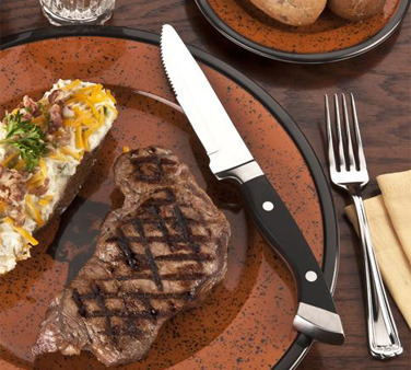 Stockyard Steak Knife, 10-1/2", full-tang, high-carbon stainless steel blade, two-rivet enclosed black matt synthetic handle