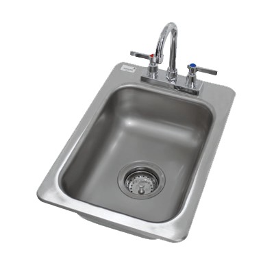 Drop-In Sink, one compartment, 10" wide x 14" front-to-back x 5" deep bowl, 20 gauge stainless steel, with deck mounted gooseneck faucet, basket drain