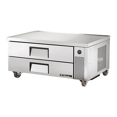 Refrigerated Chef Base, 51-7/8"L, one-piece 300 series 18 gauge stainless steel top with V edge, stainless steel front/sides, aluminum back, aluminum interior with stainless steel floor, (2) drawers [accommodates (3) 12"x20"x4" pans, NOT included], 4" castors, 1/3 HP, 115v/60/1, 8.1 amps, NEMA 5-15P, cULus, UL EPH Classified, CE, MADE IN USA