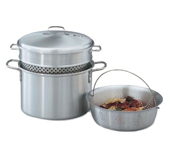 Pasta Cooker/Vegetable Steamer, 4-piece, 8 qt., 3/32" holes, 18 ga., USA made