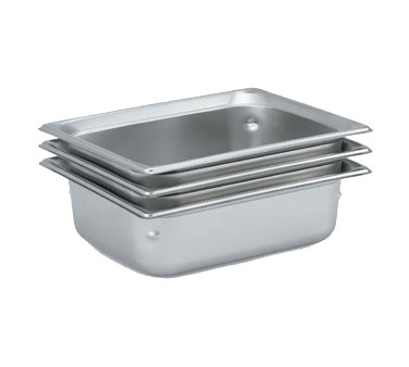 Super Pan 3® Half Size Food Pan, 4" deep, 100mm, 22 gauge 300 series stainless steel, top flange corners with concave indentation, anti-jamming, ramped sides, reverse form flattened edge, framing shoulder, interchangeable with SP3 plastic pan line, NSF, meets gastronorm (EN 631-1) standard, USA