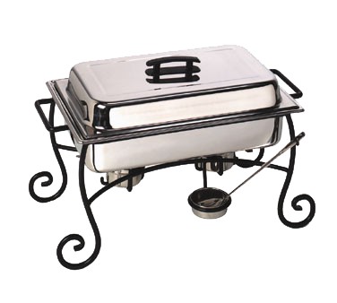 Chafer Frame & Cup, curled feet, side handles, black wrought iron, Ironworks Collection
