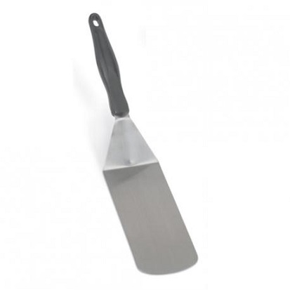Heavy-Duty stainless Steel Turner with Ergo Grip® black handle, solid, ergonomic high-temperature patented nylon handle, heat resistant to 450°, heavy gauge stainless blade & shaft, blade dimensions 8-1/4"L x 2-7/8"W, 16-1/2" overall length, imported, Jacob's Pride® Collection, Limited Lifetime Warranty
