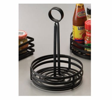 Condiment Basket, 6" dia. x 8-1/2" H, flat, coil, center slotted handles, black