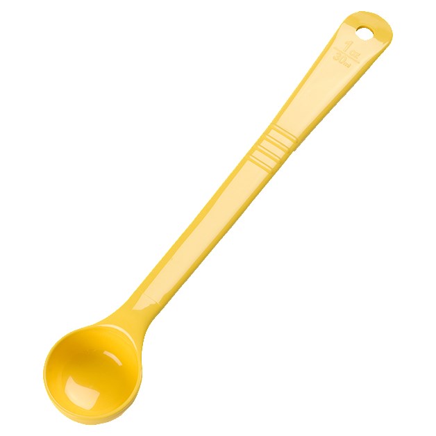 Measure Misers® Portion Spoon, 1 oz., solid, long handle with thumb grip, flat bottom, resting notch, dry heat-resistant to 270°F, break-resistant, dishwasher safe, acetal, yellow, NSF, BPA-Free