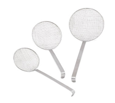 Wire Mesh Skimmer, 14", one-piece heavy duty 18/8 stainless steel, hooked satin-finish handle, blade diameter 6-1/2", imported