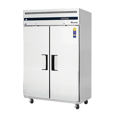 Reach-In Freezer, two-section, 48 cu. ft. capacity, (6) shelves, top mounted self-contained refrigeration system, digital control system, adjustable self-closing & field reversible doors (from 2013 model), door locks, stainless steel interior & exterior, shielded incandescent interior lighting, 115v/60/1-ph, NEMA 5-20P, (2) 1/2 HP compressors, 14.81 amps, NSF / ANSI 7 , ETL Safety