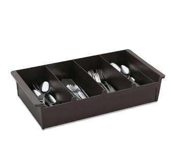 Cutlery Dispenser/Box, DARK BROWN, plastic w/4 compartments, 20"x10"x4", USA made