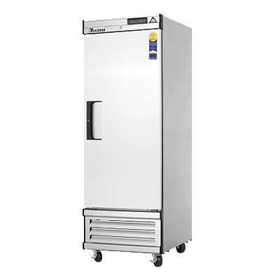 Reach-In Refrigerator, one-section, 20 cu. ft. capacity, (3) shelves, bottom mounted refrigeration system, digital control system, adjustable self-closing & field reversible door, door lock, pressure relief port, stainless steel interior & exterior, (4) 4" diameter (5" overall height) swivel casters (front with brakes), shielded incandescent interior lighting, 115v/60/1-ph, NEMA 5-15P, 1/4+ HP, 4.10 amps, ETL-Sanitation, ETL Safety