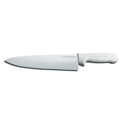 SANI-SAFE® 10" Cook's Knife, in Perfect Cutlery Packaging, stain-free, high-carbon steel blade, textured, white polypropylene handle, NSF Certified