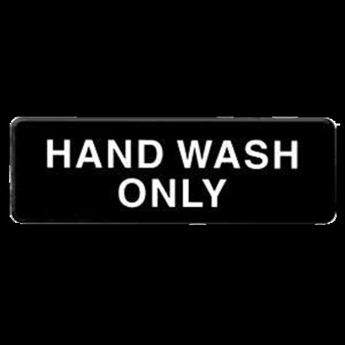 Information Symbol Sign, 9" x 3", "Hand Wash Only", self-adhesive backing, white lettering on black background