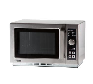 Amana® Commercial Microwave Oven, countertop, 1000 watts, 10 min. dial timer, 4 power level, stackable, interior light, Grab & Go door handle, stainless steel exterior & interior, non-removable air filter, side hinged door with glass window, 120v/60/1-ph, 15.0 amps, NEMA 5-15P, ETL listed
