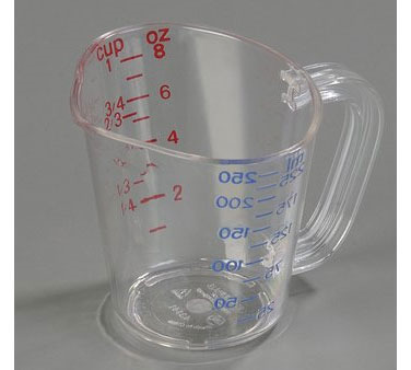 Measuring Cup, 8 oz. (1 cup) capacity, oval, pour spout, nestable, US/Metric measurements, C-handle, dishwasher safe, polycarbonate, clear, NSF
