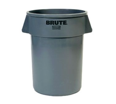 Round BRUTE® Container, without lid, 55 gallon, 26-1/2"D x 33"H, reinforced rims, built in handles, double rimmed base, high-impact plastic construction, gray