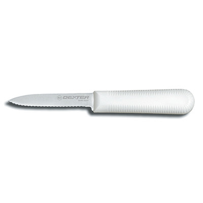 Sani-Safe® (15373) Paring Knife, 3-1/4", scalloped edge, DEXSTEEL™ stain-free, high carbon steel blade, non-slip, textured, polypropylene white handle, Perfect Cutlery Packaging, NSF Certified, Made in USA